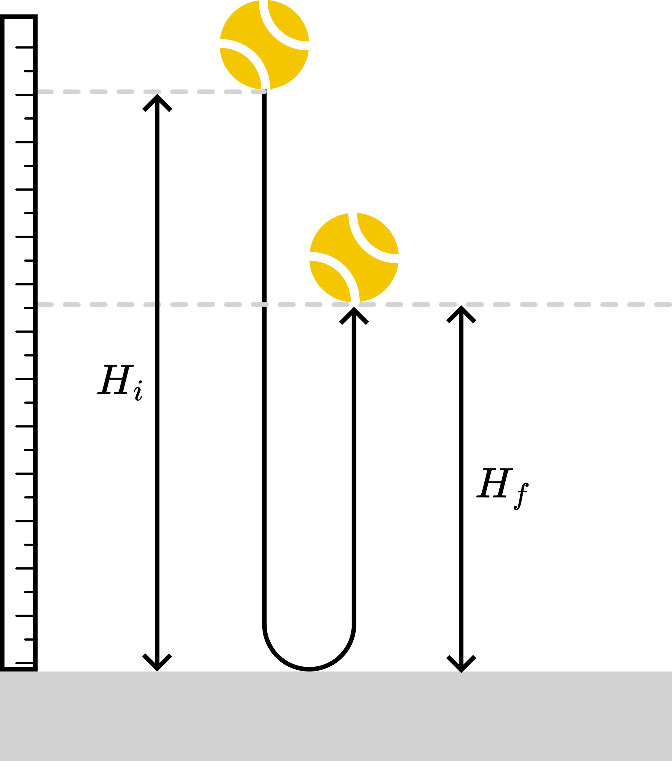 Experiment: drop a tennis ball with zero initial velocity from various height, . Use the acoustic chronometer to measure the time between multiple bounces.