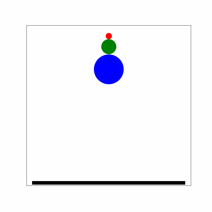 Consider two particles, and , moving along the -axis. The two particles will elastically collide. We set mass 1 at a value of 1 (kg) and set to 6 (kg).
